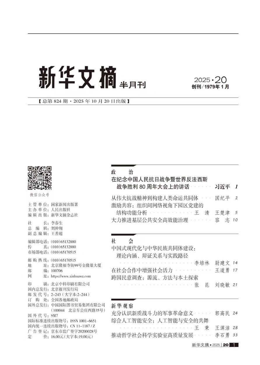日前,学院容志教授撰写的《大力推进基层公共安全高效能治理》一文被《新华文摘》2025年第20期全文转载。该论文原载于《国家治理》2025年第13期。
