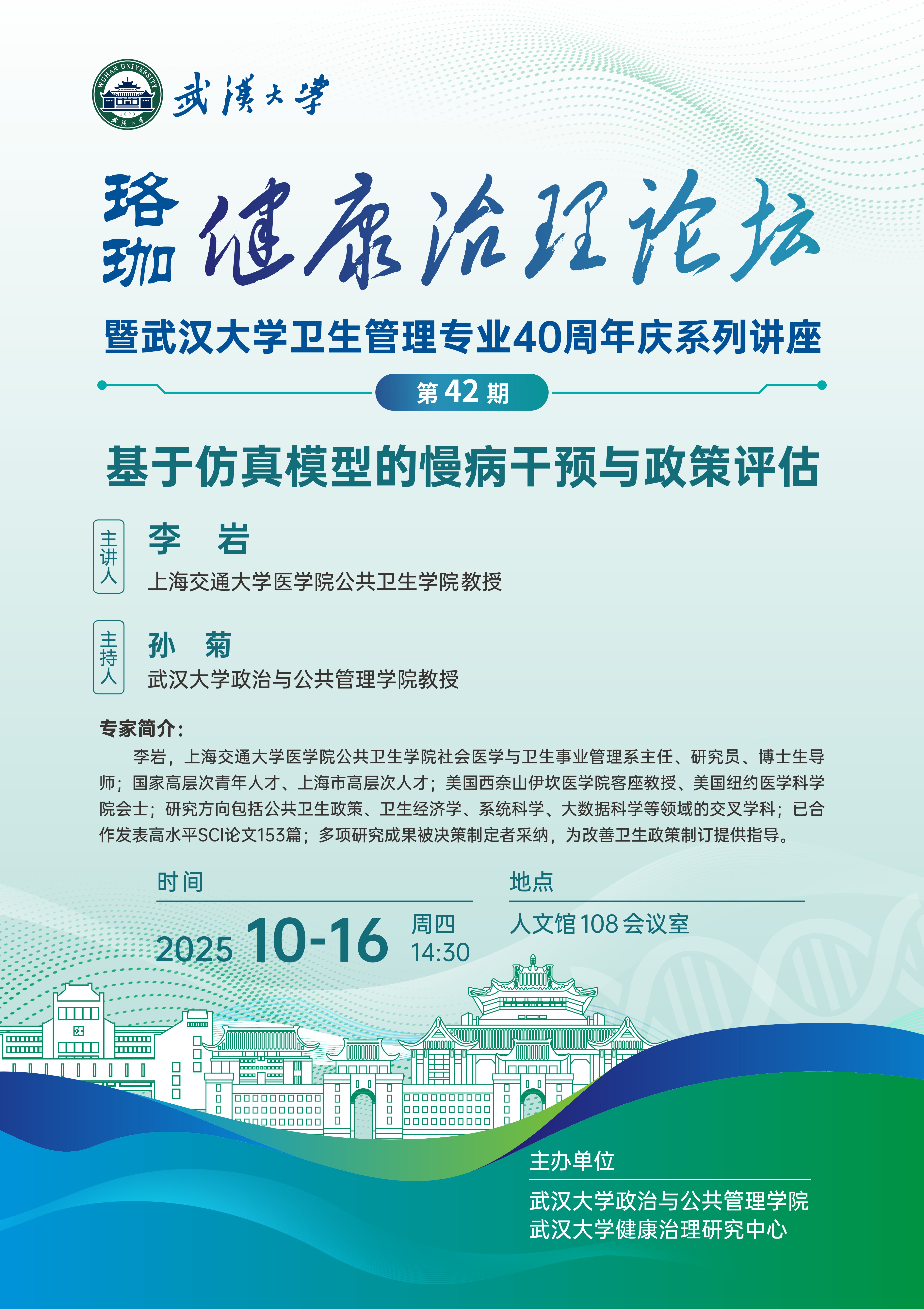 【珞珈健康治理论坛预告】李岩:基于仿真模型的慢病干预与政策评估