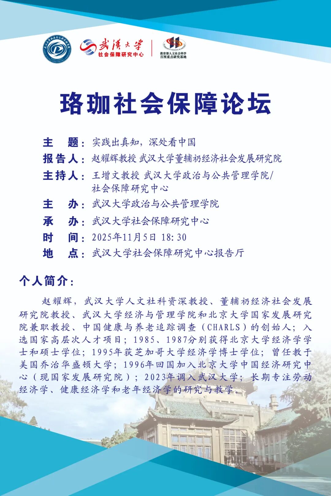 【讲座预告】珞珈社会保障论坛 | 实践出真知,深处看中国